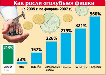 По мнению аналитиков, 2007 год не повторит рекордных показателей прошлого года на фондовом рынке. Всему виной цены на нефть, сейчас они гораздо ниже прошлогодних уровней, да и ситуация на развитых рынках США, Европы явно не способствует столь сильному росту. Поэтому в нынешнем году можно ожидать роста рынка примерно на 35 - 45%. Что, кстати, очень даже неплохо.
